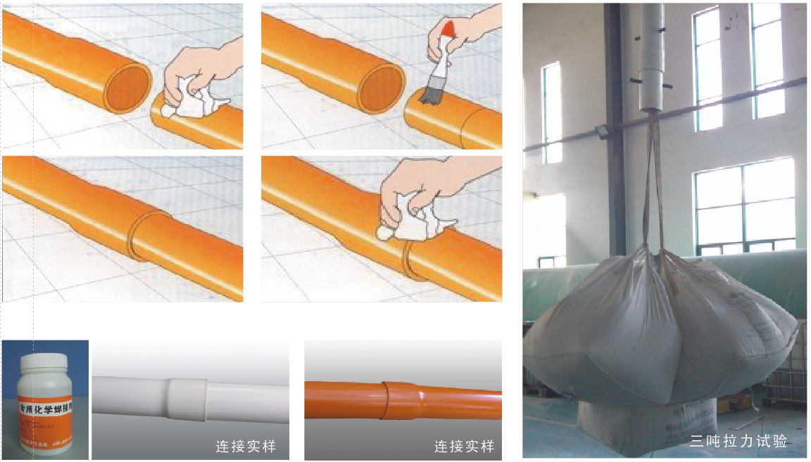 采用HPVC管專用化學焊接劑連接方式,連接接口拉伸強度大于本體拉伸強度。